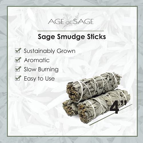Age of Sage White Sage Smudge Sticks 4" Long - Burning Sage Bundle for Cleansing House - White Spirit Sage Incense - Sage Candles for Cleansing House - Salvia Blanca para Limpiar - 3pk