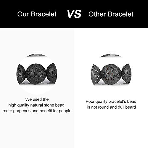 - ESSENTIAL OIL DIFFUSER BRACELET: Lava rock stone can absorbing your favorite Essential oils well, just drop a little your favorite essential oils on the lava rock stone bracelet, the scent will last all the day on the volcanic stone. Help with meditating and healing you. Or as a gift for your family, friends and so on.