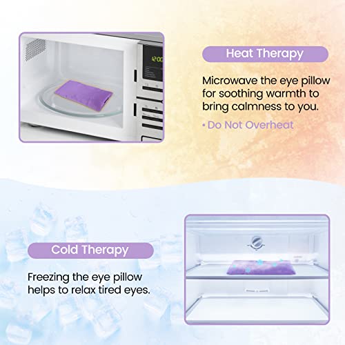 - Heated Eye Mask & Cooling Eye masks: Just microwave this eye heating pad for 30 seconds, this yoga eye pillow provides gentle hot compress for eye to alleviate eyes fatigue, dry eyes, and tension and improve sleeping quality. Chill eye pillows for relaxation overnight and use it as cold compress to reduce the appearance of dark circles and puffy eyes, refreshing tired eyes strained by study or extended computer time.